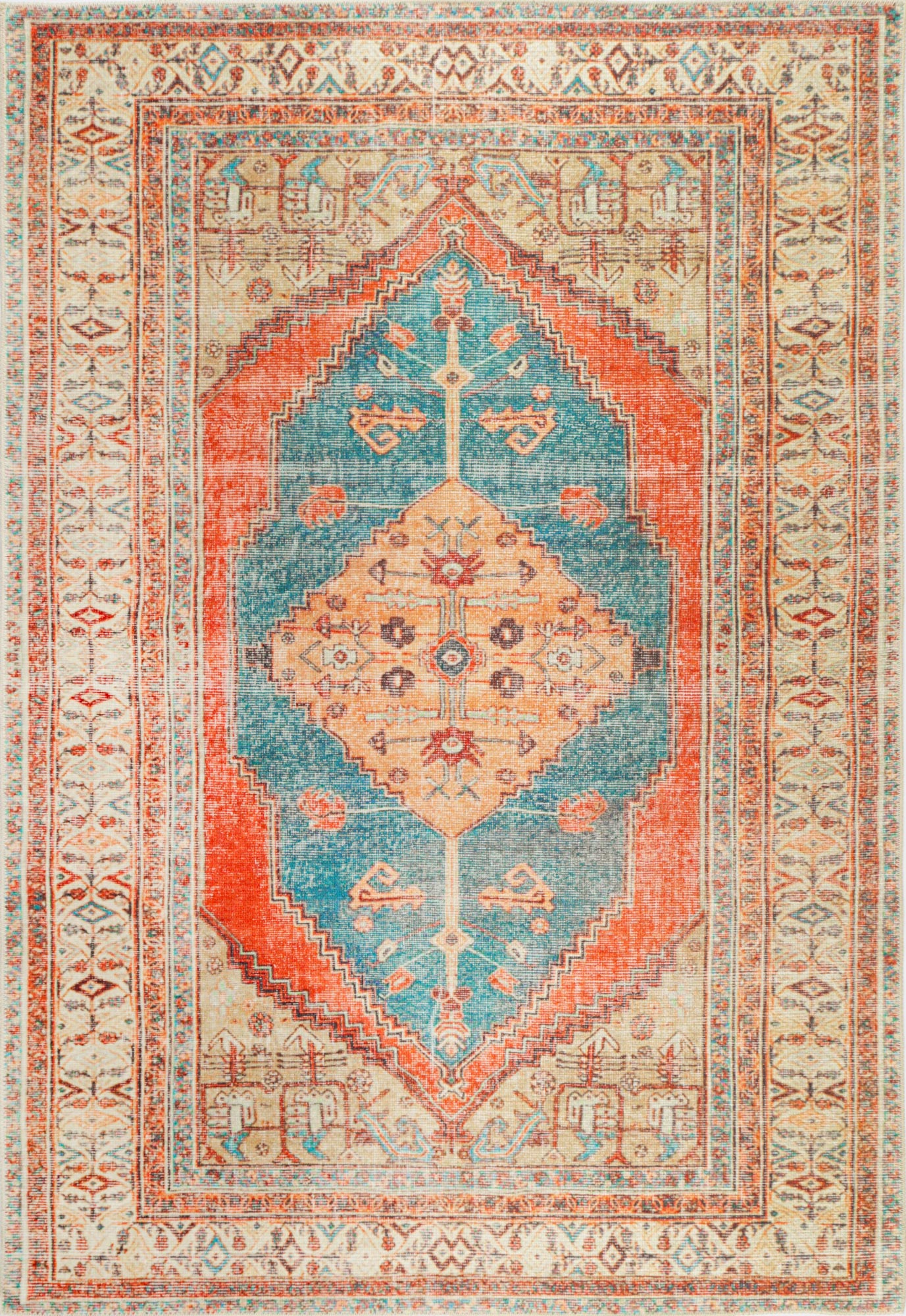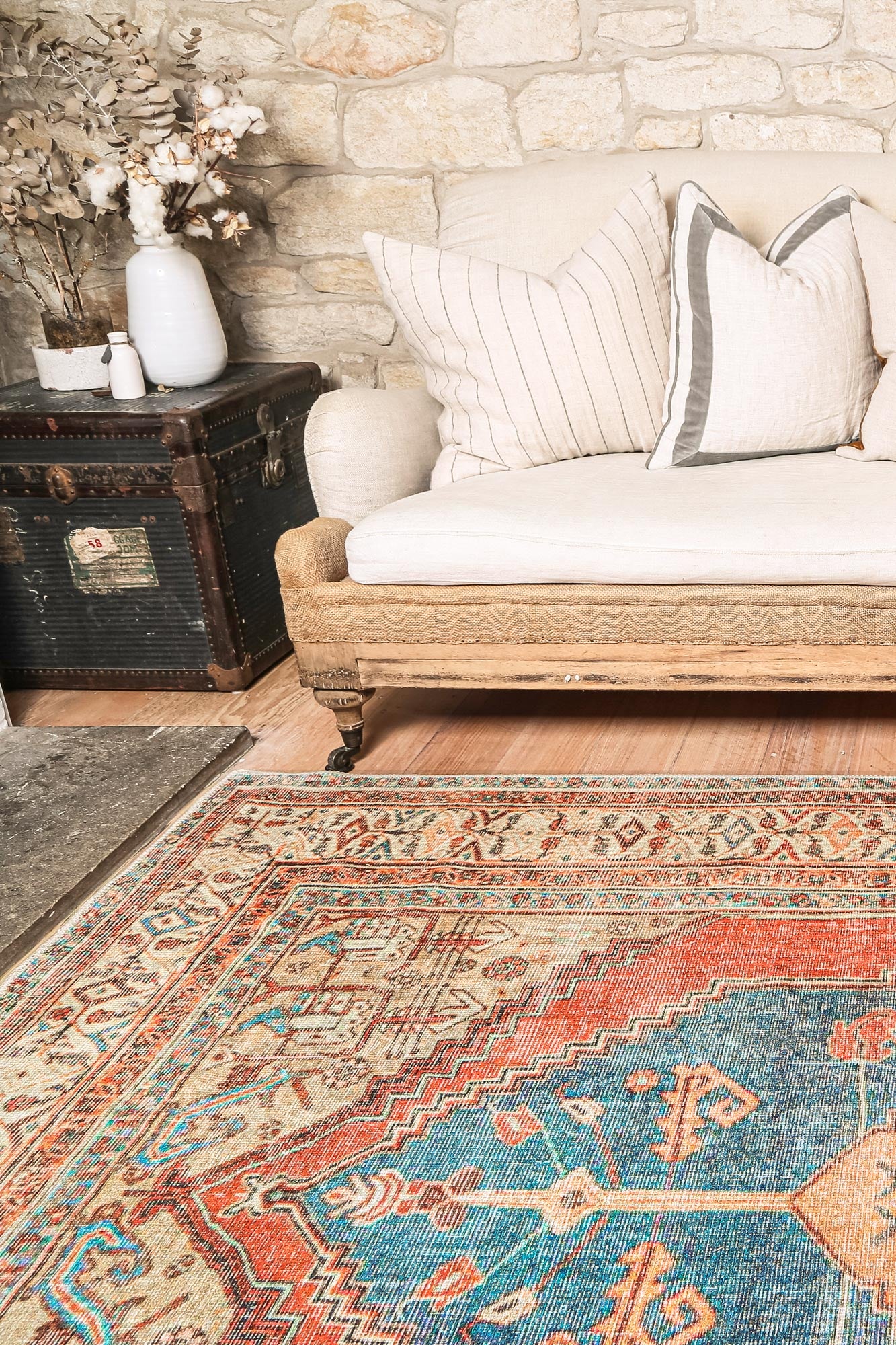 The Louvre Rustic Blue Rug is a rich and vibrant colored rug that will make a welcome addition to any room in your home. The beautiful blue center medallion stands out from the burnt orange border, offering an intricately designed colorful rug. The Louvre blue and orange rug adds an unparalleled warmth and would look loved in rustic farmhouse-inspired interiors.