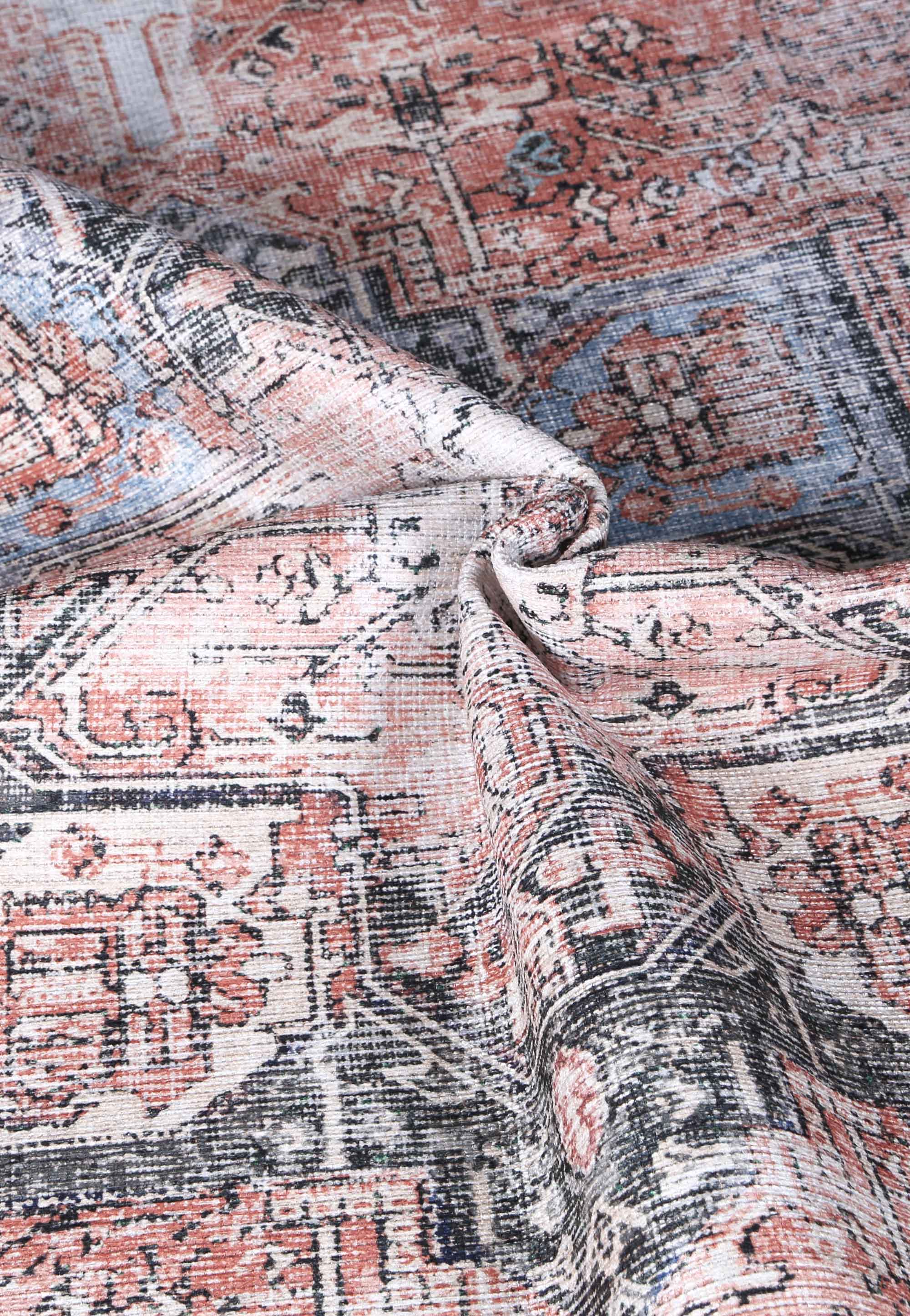 The Cezanne Terracotta Sky Area Rug is sure to bring extravagant style into any home decor. This rug has an oversized medallion design in the center that is encompassed by intricate distressed designs, as well as a soft sky blue border. The sky blue tones not only compliment the warm tones of the intricate design but also create a beautiful contrast in color from the terracotta, making this rug one of a kind. The ideal rug for every room in your home, perfect as an office rug, a living room rug or even as a wipe-clean kitchen rug.