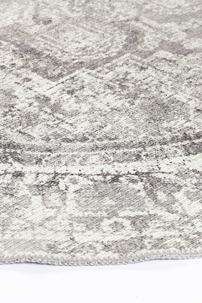 Chilaz is a soft greyish-white area rug with an intricate and beautiful medallion design. It has been distressed in order to give it more versatility, allowing it to be used in homes with both a modern interior or a more classic feel. This gray rug is a great way to effortlessly add texture and warmth to your home, while still having the space to experiment with new styles and designs. This subtle design paired with the soft color palette makes it a perfect rug in any room of your home.