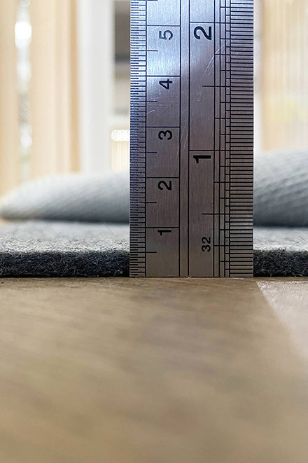 - DURABLE CUSHION - Thickness is approximately 1/4" throughout (actual thickness may vary slightly in production). Heat pressed felt adds soundproofing and insulation. Non-abrasive to protect rugs and floors from scratches. Adds extra comfort underneath rugs without extra bulking.